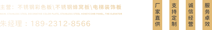 主營:不銹鋼蜂窩板、不銹鋼鍍銅板、不銹鋼彩色板、不銹鋼噴砂板